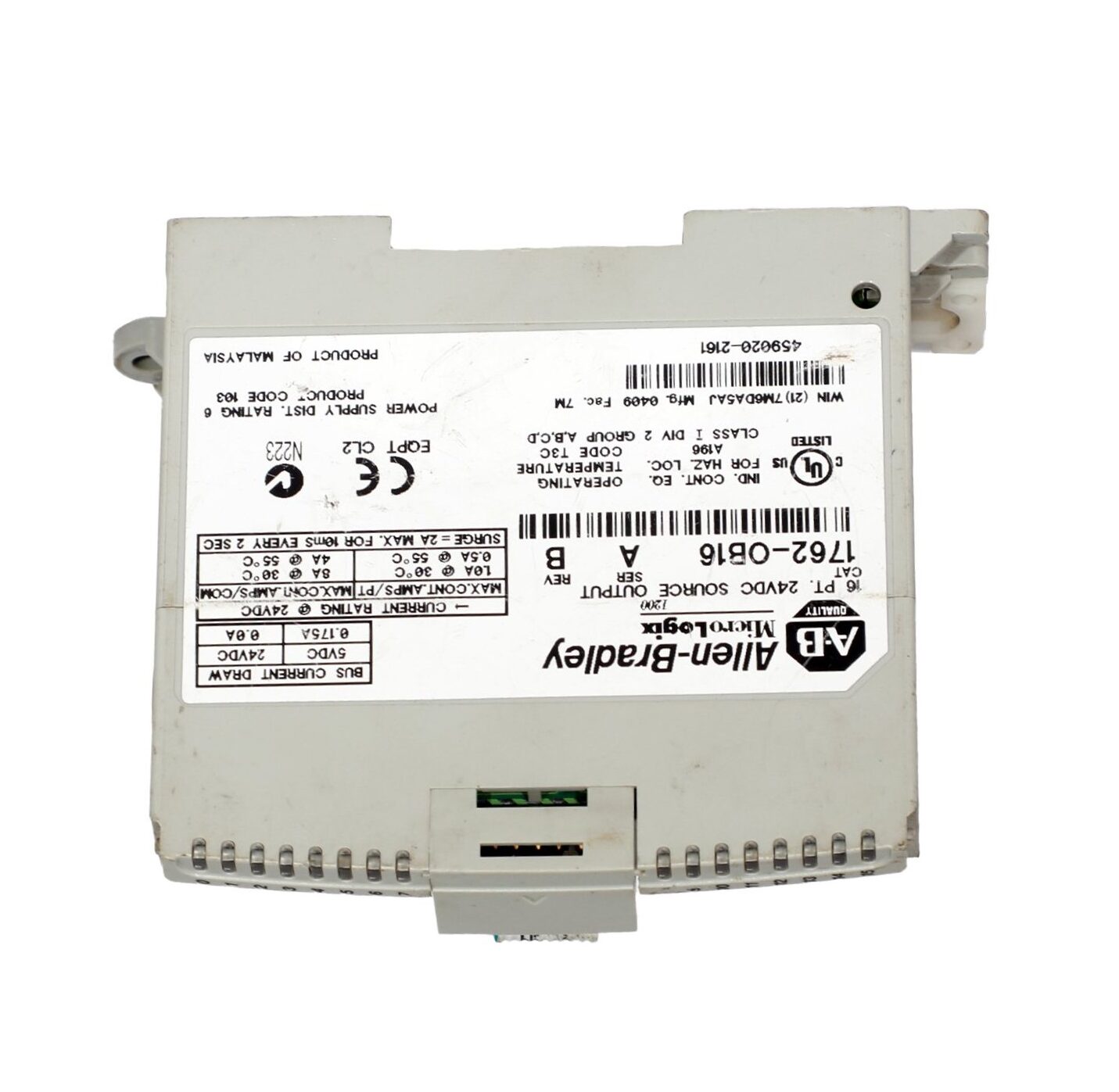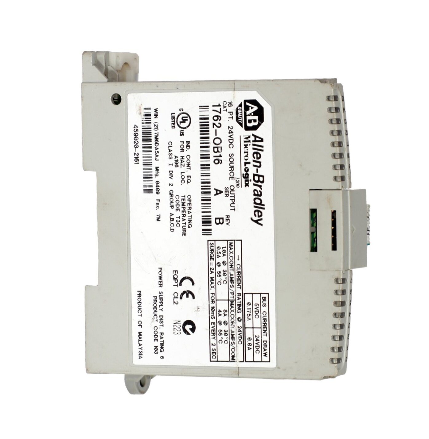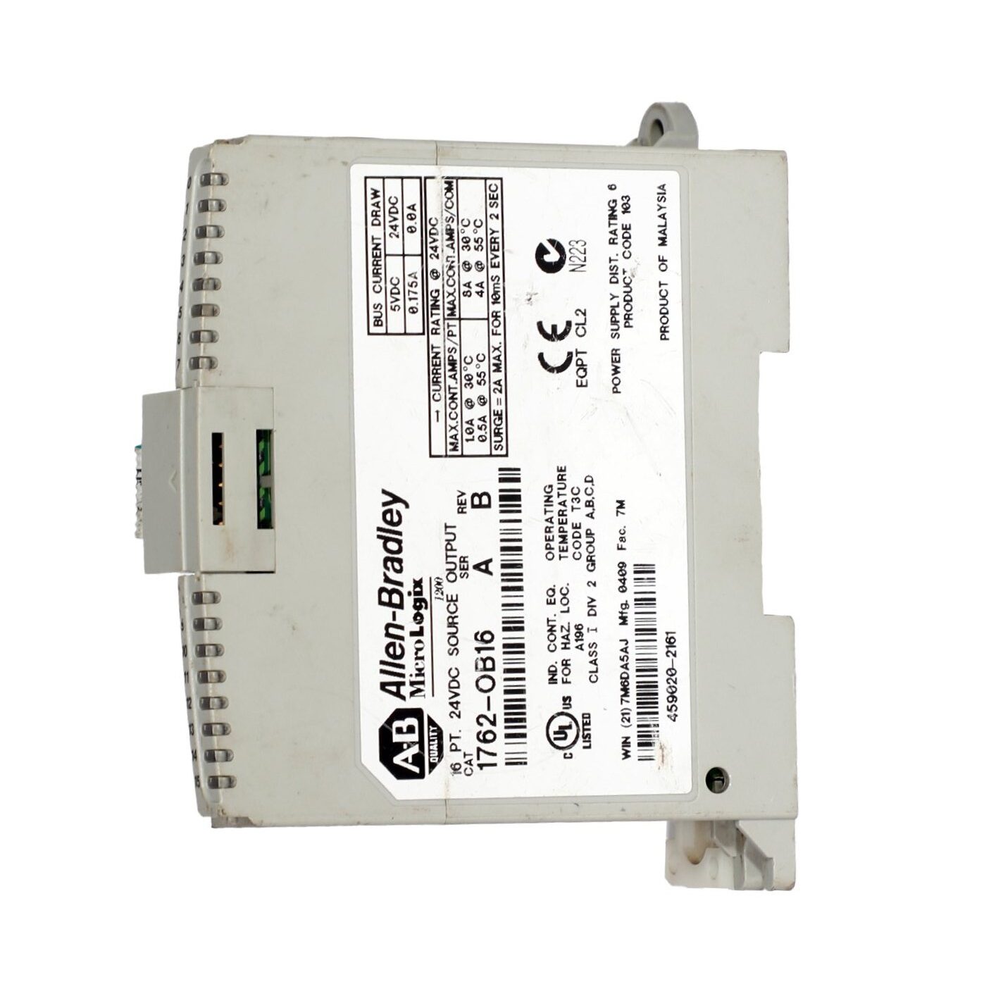 The Allen-Bradley 1762-OB16 is a 16-point 24V DC Source Output Module designed for MicroLogix 1200 PLCs. Below are its key specifications: