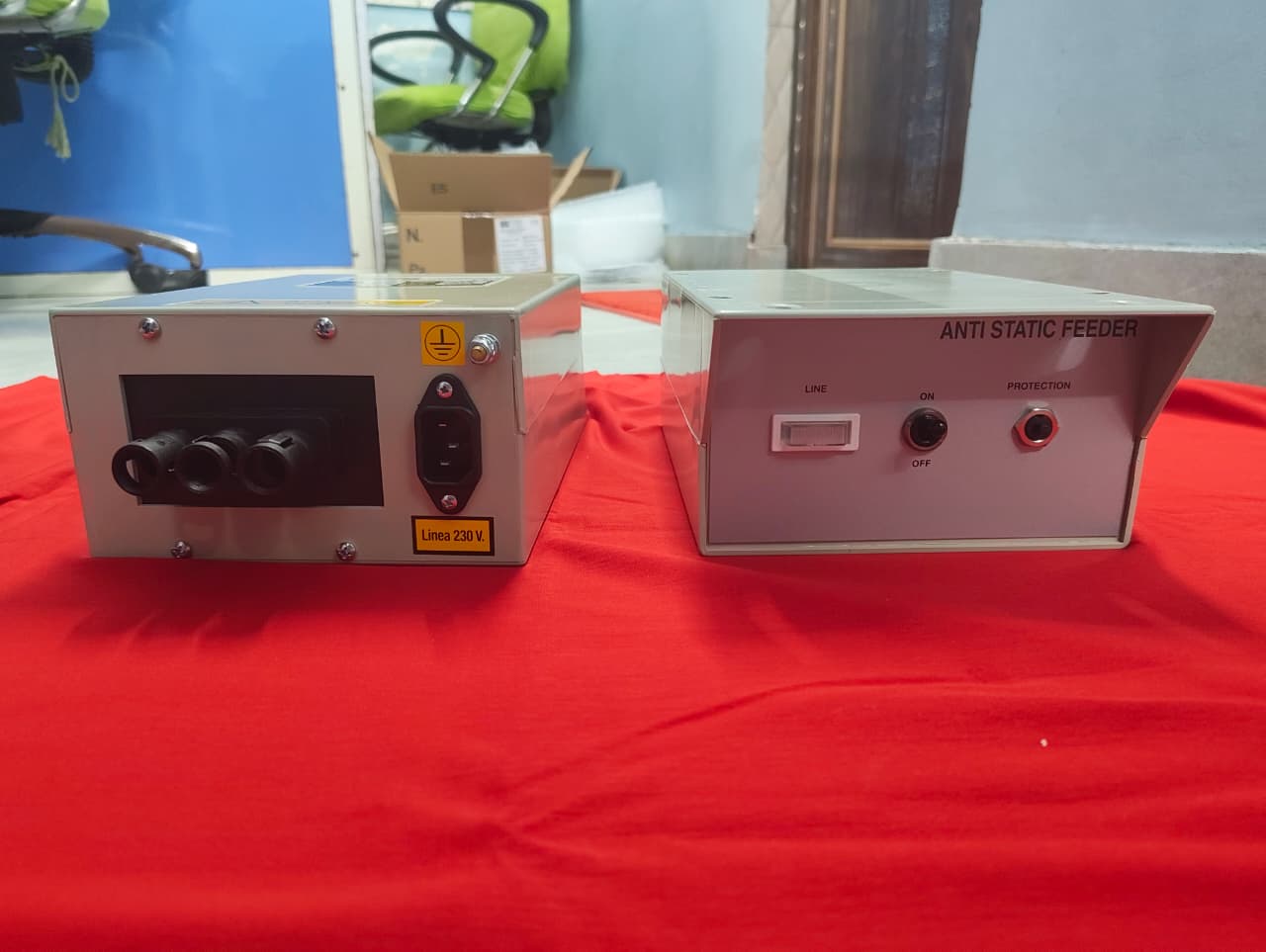 High-voltage output designed for effective static elimination in textile finishing lines, helping maintain smooth fabric flow in the textile dyeing machinery parts environment.